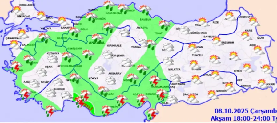 (İGFA) - Meteoroloji Genel Müdürlüğü 8 Ekim Çarşamba gününe ilişkin hava tahmin raporunu yayımladı.