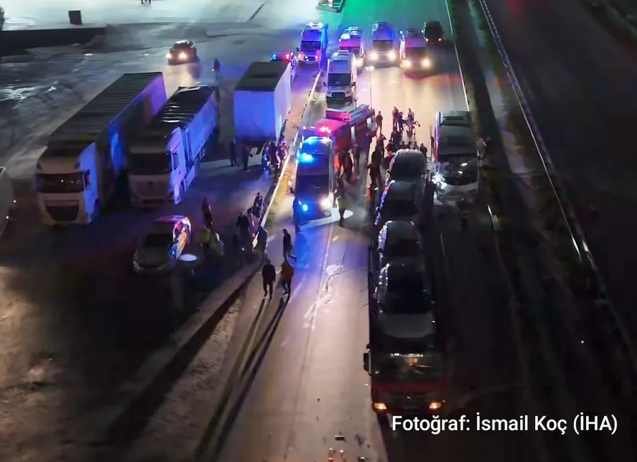 Açıklamada, İstanbul’dan çeşitli illere nakledilmekte olan 12 hükümlü, 9 jandarma personeli ve 2 cezaevi nakil aracı sürücüsünün kazada hafif şekilde yaralandığı belirtildi.